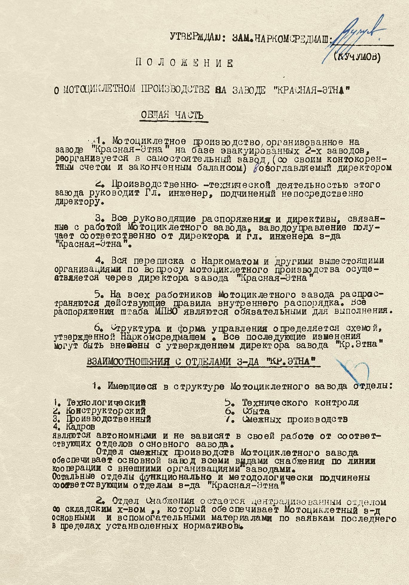 Серийное производство этих более мощных по сравнению с выпускавшимися мотоциклами Л-8, Иж-9, Ам-600, планировалось начать в 1941 году. По планам руководства Наркомата (НКСМ) до конца года предприятия должны были выпустить 32 тыс. М-72. Но мотозаводы не успели освоить технологию и до войны изготовили лишь несколько сотен мотоциклов. Поэтому в Горьком и Ирбите, куда эвакуировали головной по выпуску М-72 Московский мотоциклетный завод, все пришлось начинать с нуля: только сложившаяся производственная кооперация десятка заводов (Горьковский автозавод должен был поставлять мотопрому карданные валы и колеса) была нарушена, не хватало необходимого оборудования. Эвакуированные мотоциклетные заводы разместили в корпусе рядом с инструментальным производством «Красной Этны». 10 октября 1941 года на их основе был создан Горьковский мотоциклетный завод «Серп и молот» — в годы войны единственное предприятие в стране по выпуску мощных армейских мотоциклов с прицепной коляской. «Красная Этна» обеспечивала завод всеми видами энергии.