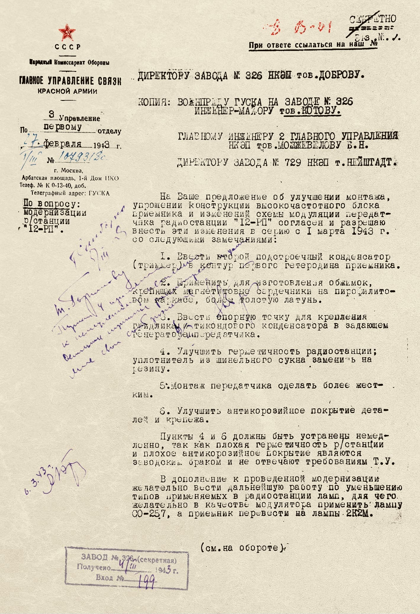 Требования заказчика к качеству радиостанций были очень высокими. Модернизация 12-РП продолжалась всю войну