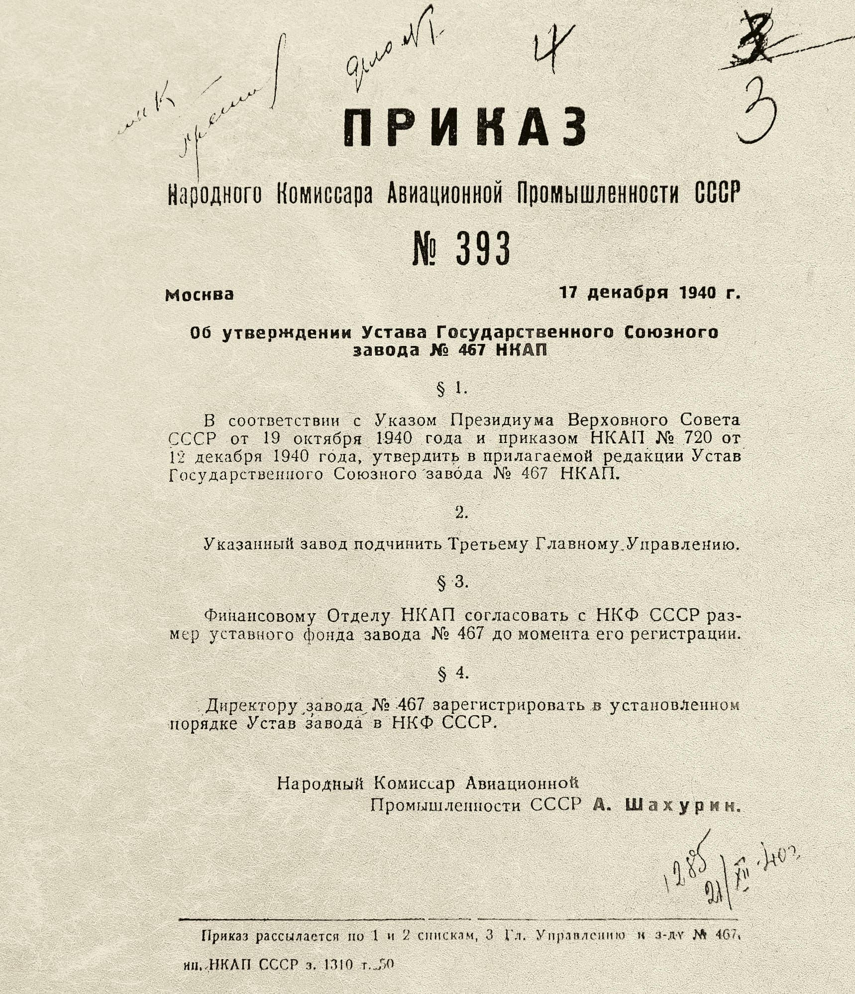 История завода № 467 началась в октябре 1940 года, когда Наркомату авиационной промышленности было передано недостроенное предприятие в городе Павлово Горьковской области. В городе были сосредоточены лучшие в области металлообрабатывающие артели, известные ювелирным подходом к изготовлению инструмента, оружия и замков. И в 1936 году трест «Росинструмент» запланировал здесь строительство еще одного такого же производства — металлических изделий бытового назначения.