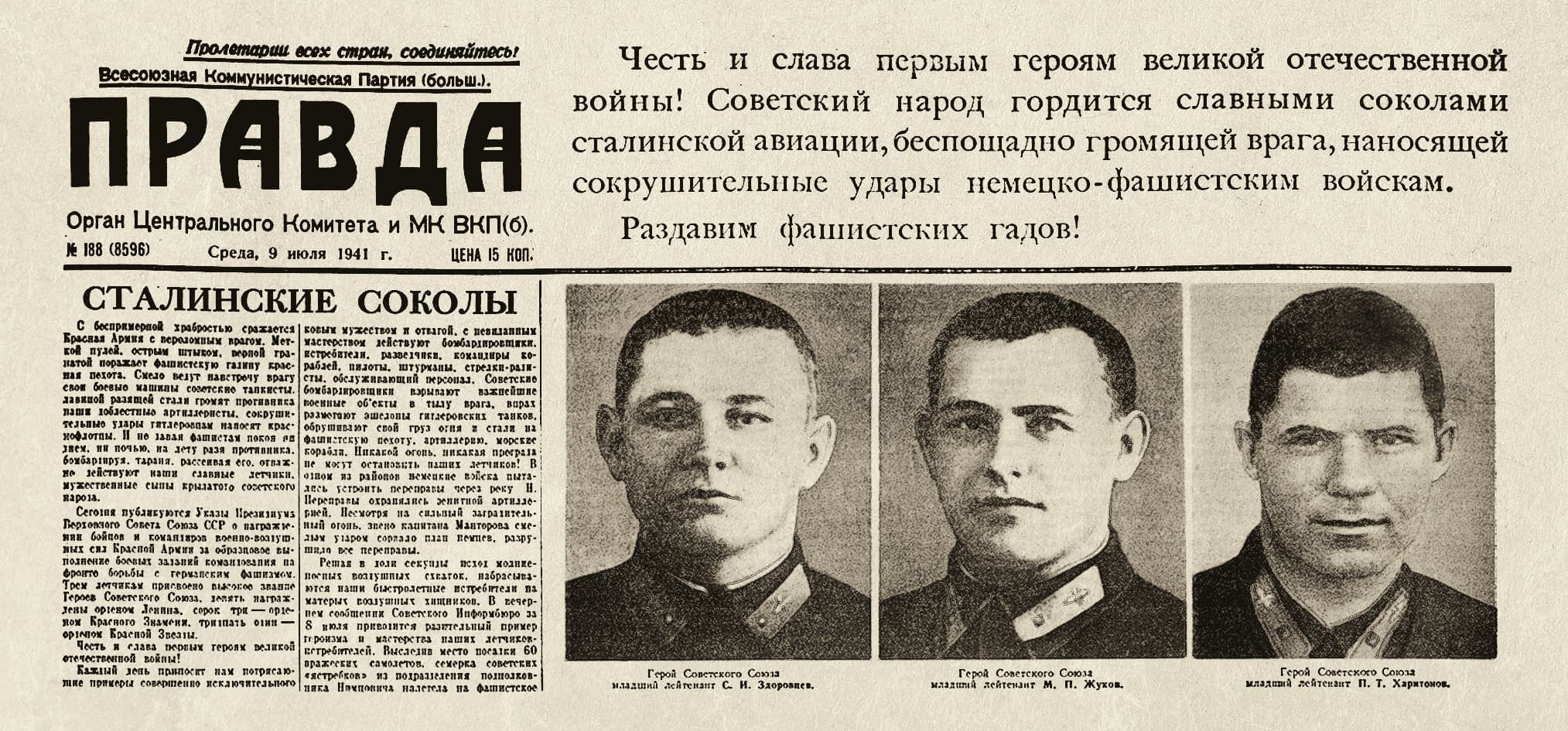 Первыми летчиками, получившими звание Героя Советского Союза в боях Великой Отечественной войны, стали именно пилоты И-16 — из 158-го истребительного авиаполка 2-й смешанной авиадивизии, которая сражалась на Ленинградском фронте. Указ Президиума Верховного Совета СССР о присвоении летчикам Харитонову, Здоровцеву и Жукову звания Героя Советского Союза и награждении их орденами Ленина вышел 8 июля 1941 года. Все они награждены за таран — так нелегко доставались первые воздушные победы. Но во всех этих случаях истребители И-16 остались в строю, что было не менее ценно, чем уничтожение самолета противника.